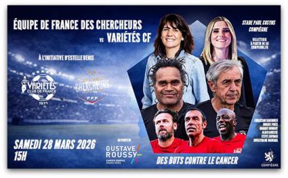 Cette rencontre opposera des stars du football, dont Christian Karembeu, Robert Pirès, Alain Giresse, Laurent Blanc, Benoît Costil, Souleymane Diawara ou encore Steve Savidan, à des chercheurs et des personnels de Gustave Roussy.